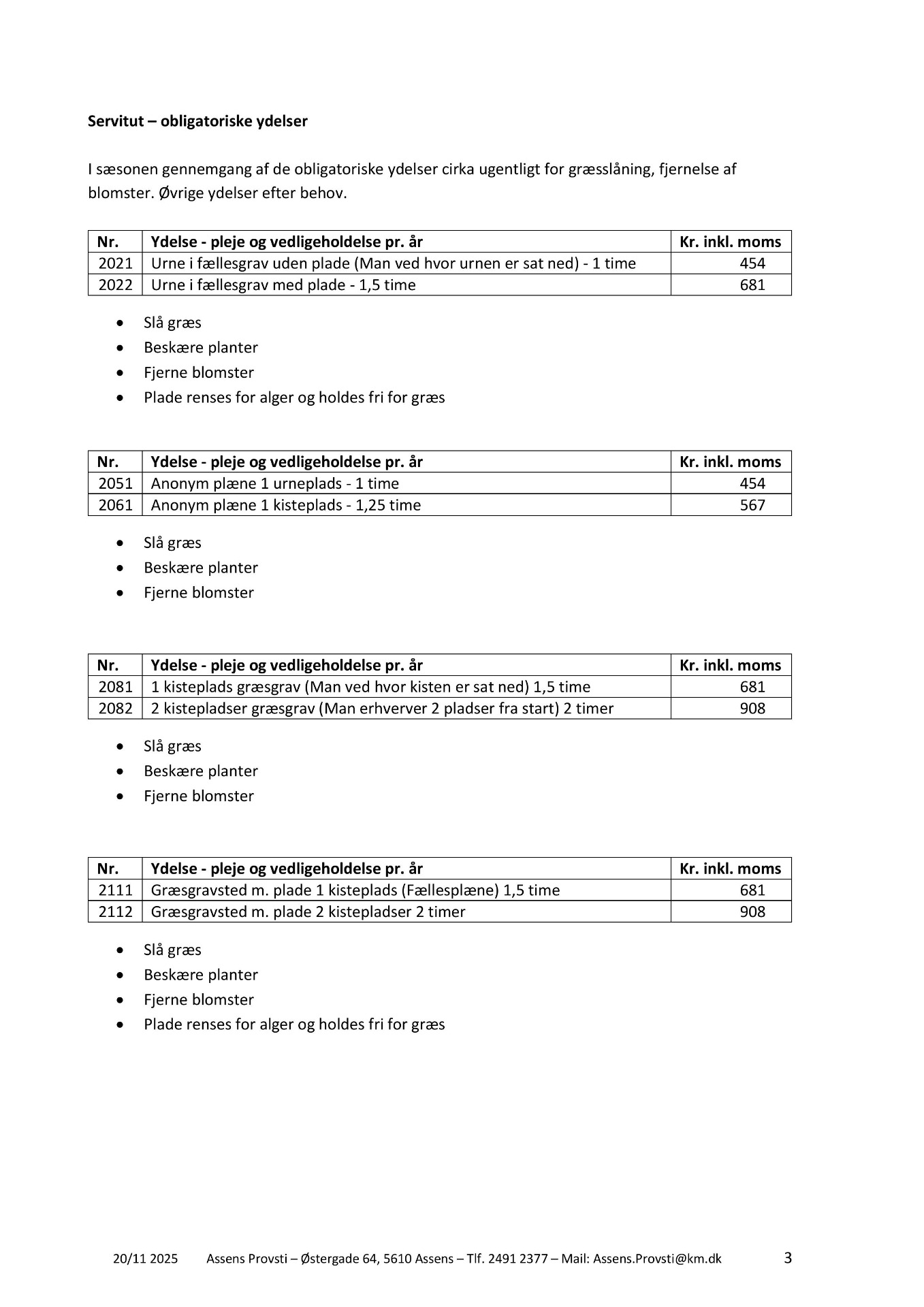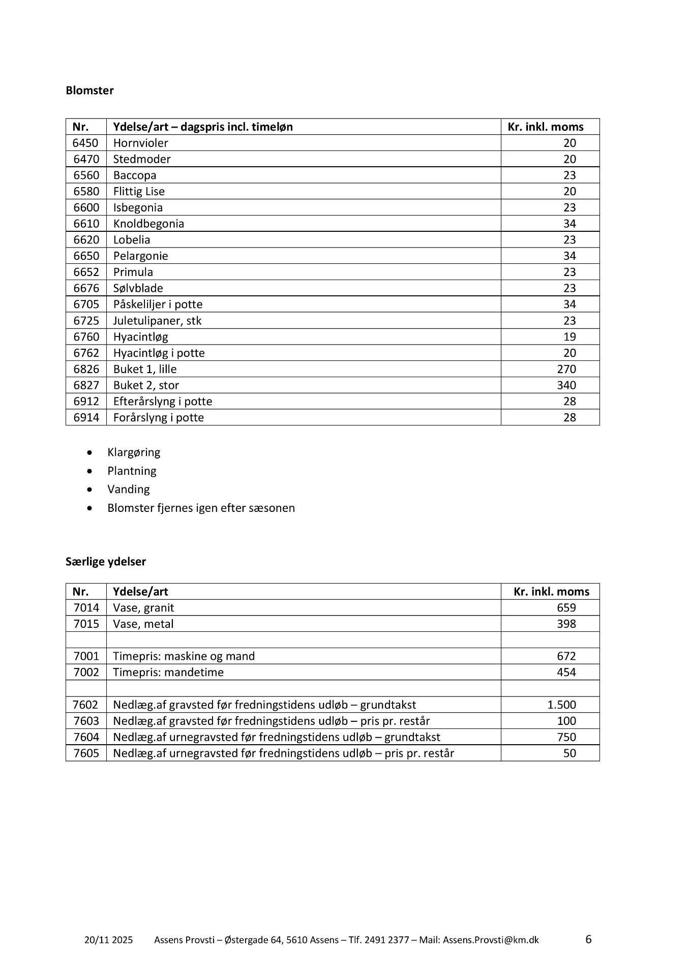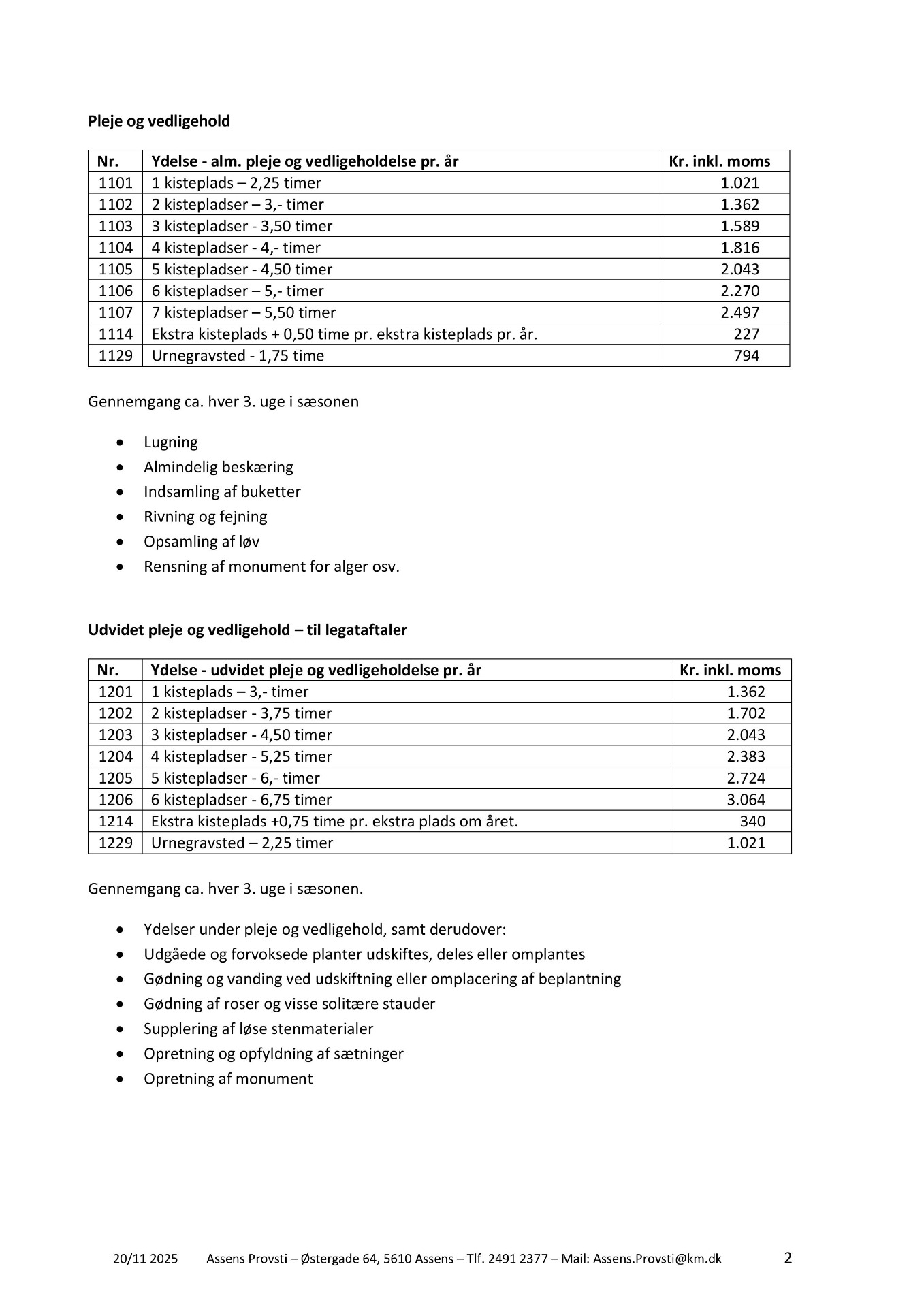 Klik på download for at se pdf med 2026 priser for kirkegården eller rul ned af siden