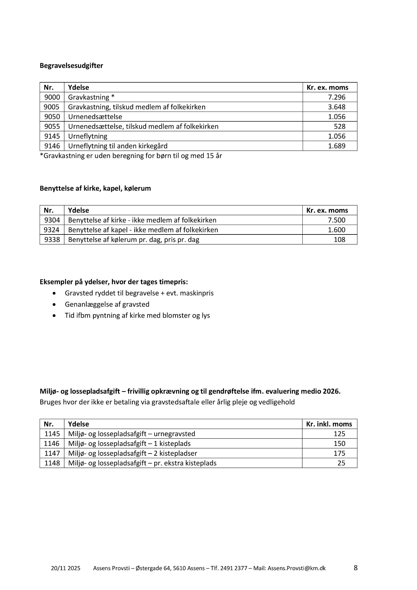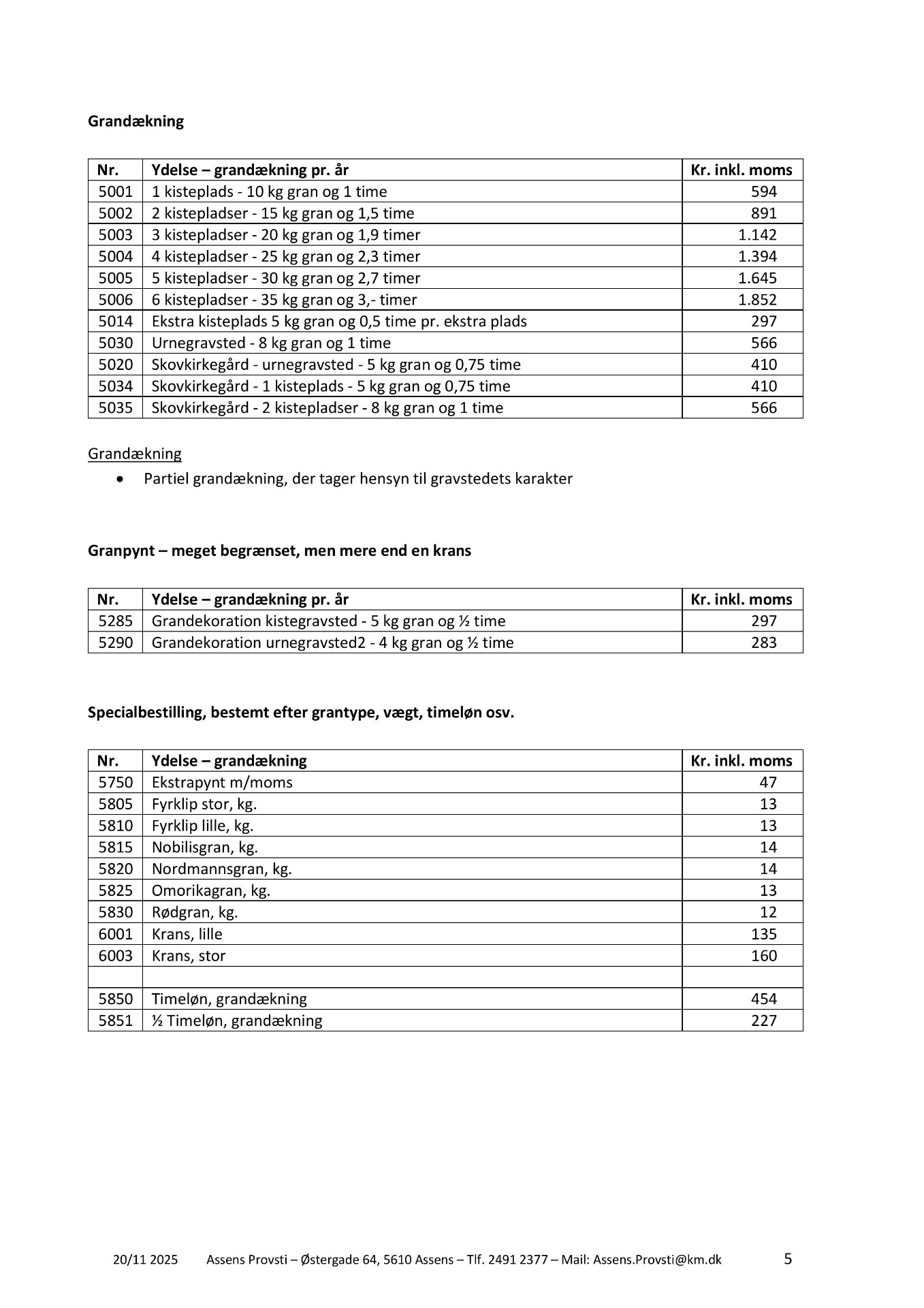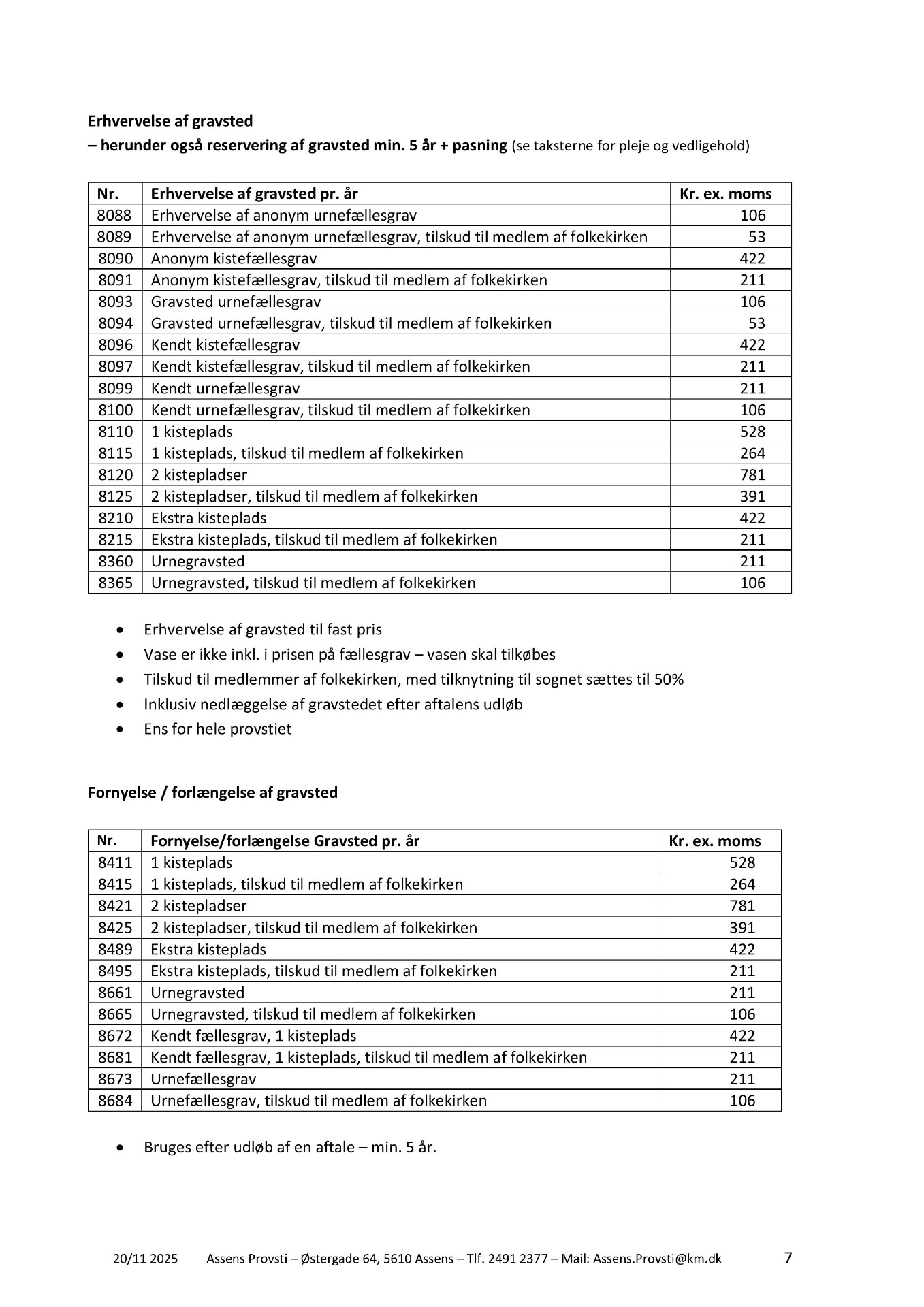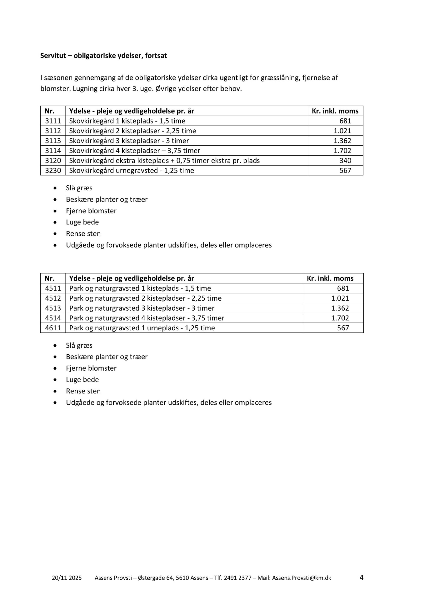 Klik på download for at se pdf med 2026 priser for kirkegården eller rul ned af siden